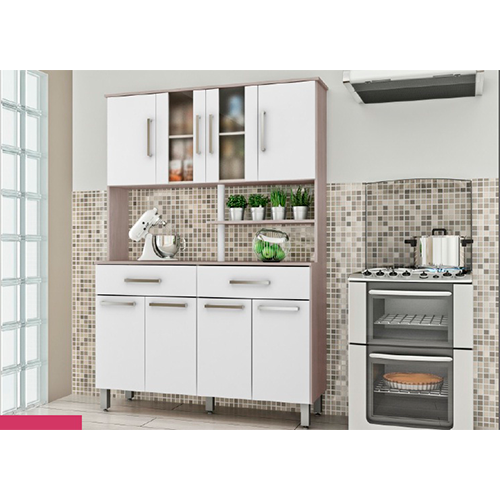 Armário para cozinha – Linha Bruna – Confeccionado em MDP-FF – 15mm com tampo ou cuba para pia opcional. Cores: Grigio/Atacama e Champagne/Branco.