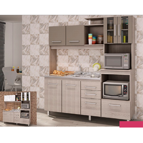 Armário para cozinha – Linha Geovanna – Confeccionado em MDP-FF – 15mm com tampo ou cuba para pia opcional. Cores: Grigio/Atacama e Champagne/Branco.