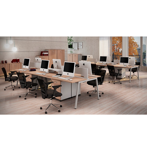 Plataforma de trabalho Roal – Linha Staff com pés traves de aço, com sistema calhas para cabeamento de energia, telefonia e lógica, design europeu – Confeccionado em MDP 25mm. Varias opções de configuração e cores.