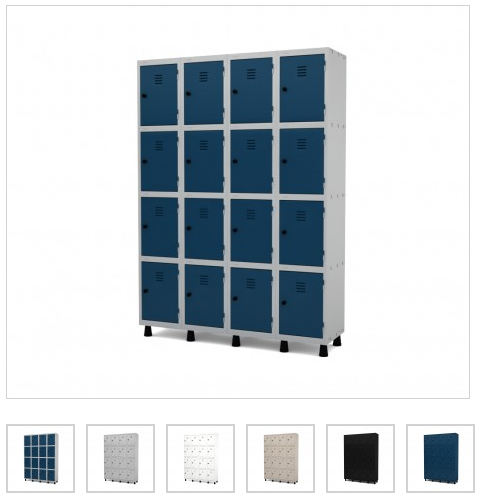 16 portas com 1 veneziana para ventilação e 1 reforço interno por porta